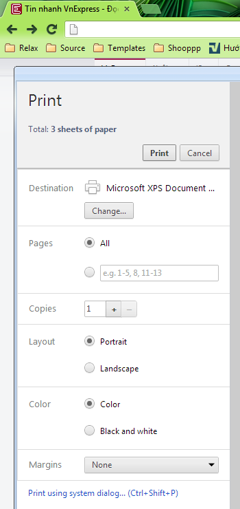 Để các bản in ra được đẹp, không có những chi tiết thừa trên bản in, bạn cần thiết lập lại một số tham số mặc định của trình duyệt web như sau: