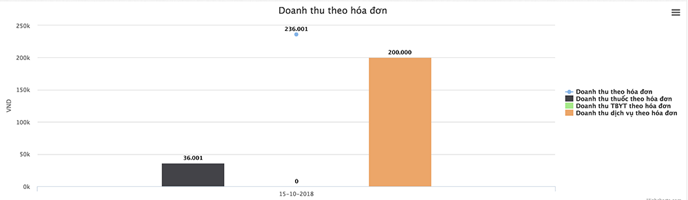 Thống kê doanh thu cho biết tình hình doanh thu của phòng khám. Thống kê doanh thu được thể hiện dạng biểu đồ, do đó người xem sẽ có một cái nhìn trực quan. Người dùng có thể chọn thống kê theo ngày, tháng, năm